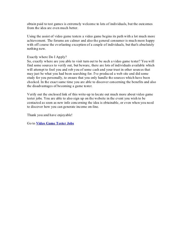 Start making passive income by testing video games and work from home. This means that many testers have no. We're hiring a team of Game Testers for our client, a leader in the gaming industry, to perform Quality Assurance testing at their office in Austin, TX. Search CareerBuilder for Game Tester Jobs and browse our platform. Play from anywhere and get paid to play !